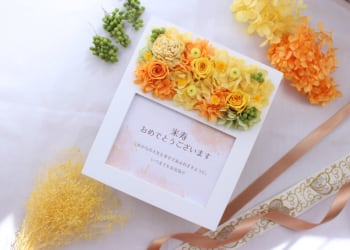 米寿祝いのフォトフレーム プリザーブドフラワー 写真立て 写真たて フォトスタンド 傘寿 長寿祝い 花 イエロー 黄色 送料無料