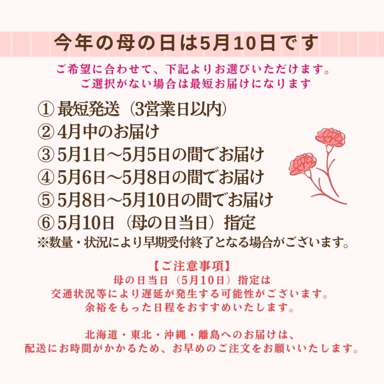 配送の混雑が予想されるため、お早めのご注文が安心です