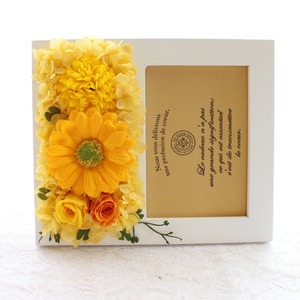 ソープフラワーのガーベラとマムをメインに柔らかいイメージでお花をフォトフレームにアレンジしました。