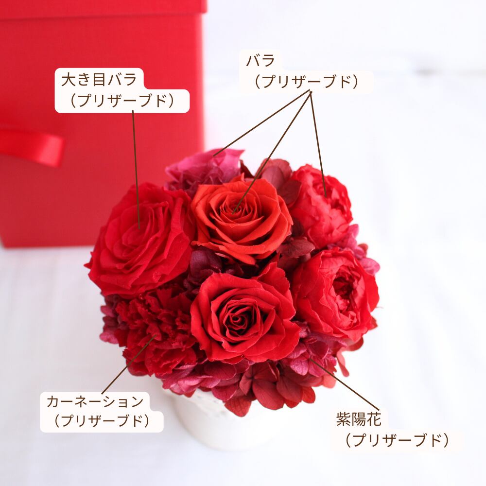 綺麗 かわいい きれい 素敵 女性 可愛い アニバーサリー 枯れない花 アジサイ あじさい フラワーアレンジ フラワーギフト ドライフラワー 水がいらない そのまま飾れる 長持ち 退職祝い 送別 おしゃれ 大人可愛い ナチュラル 明るい 彩り豊か 優しい雰囲気 癒し お母さん ママ 両親 レッド 赤 ボルドー 春 薔薇 ばら インテリア 誕生日 記念日 リビング 玄関 BOX