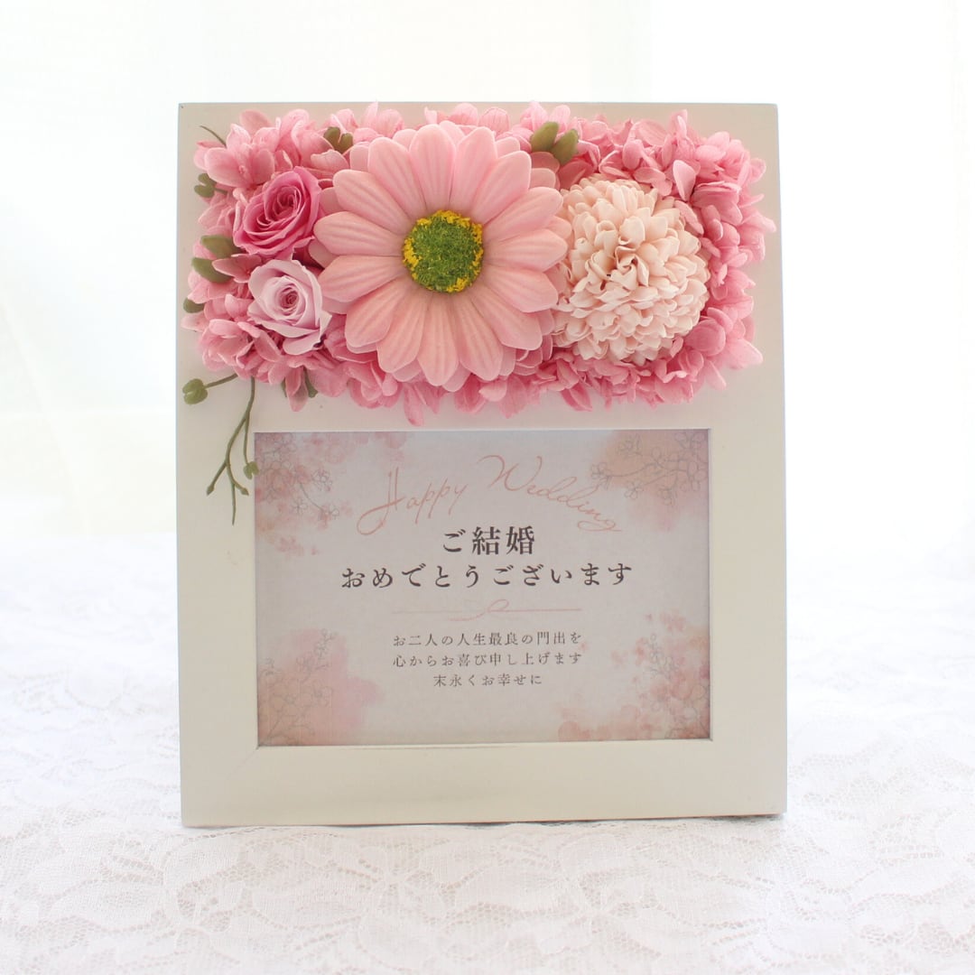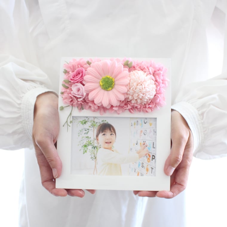 お花のフォトフレームは、華やかなお花もプレゼントになります。
