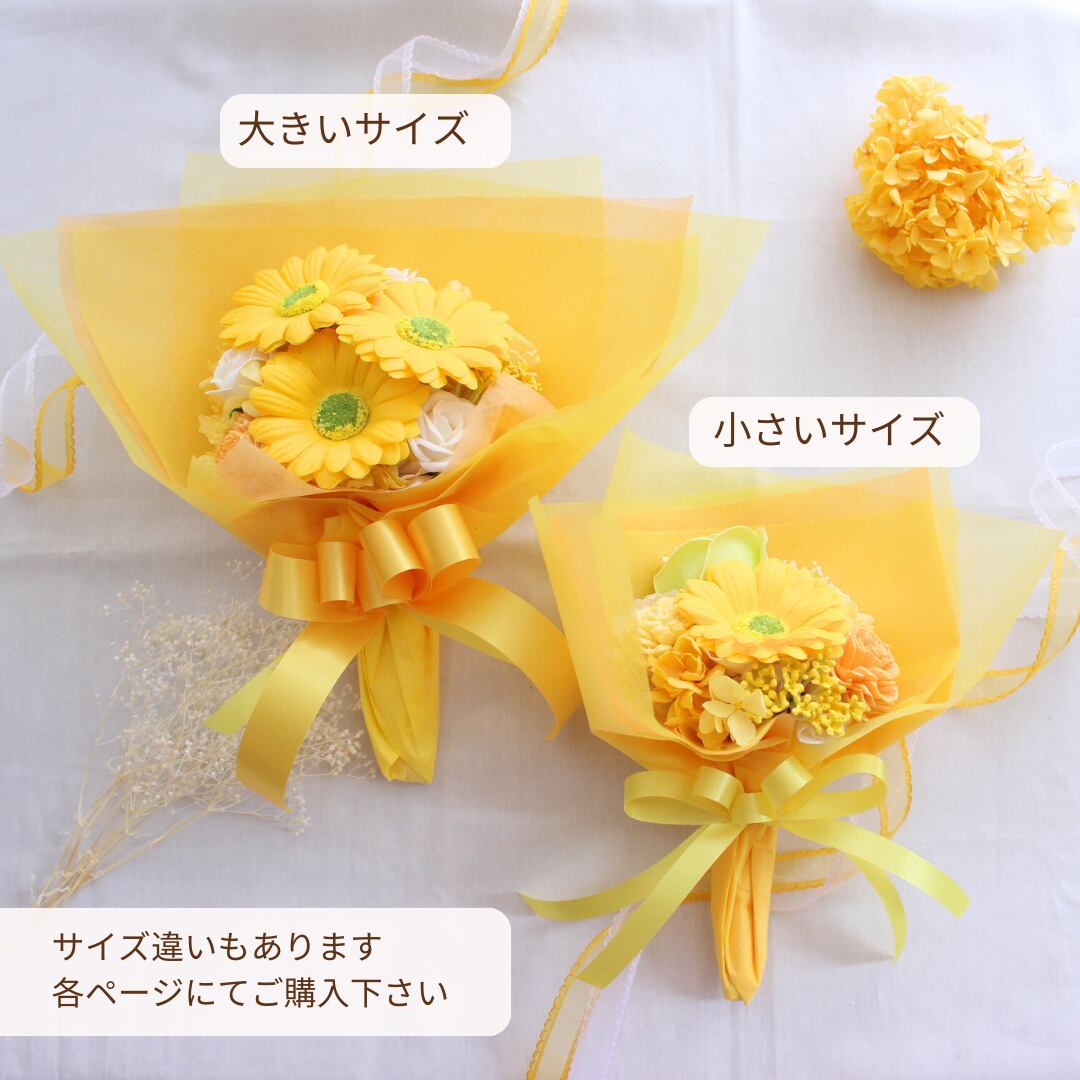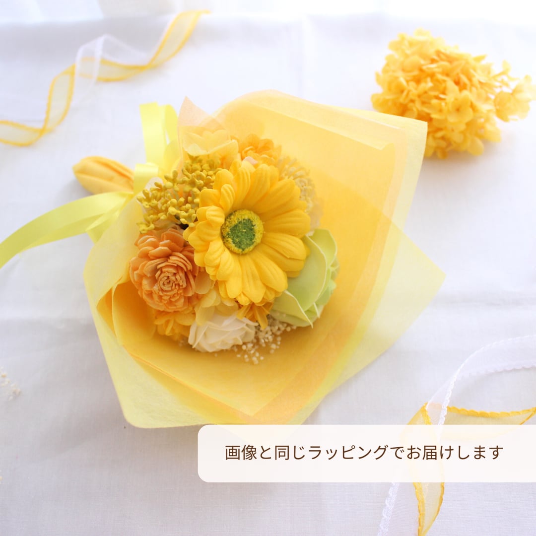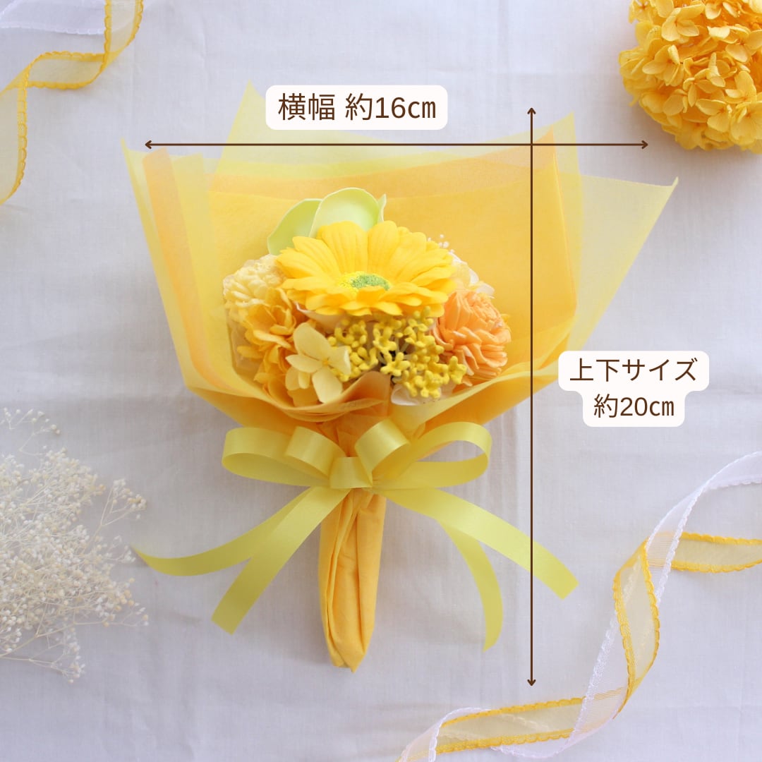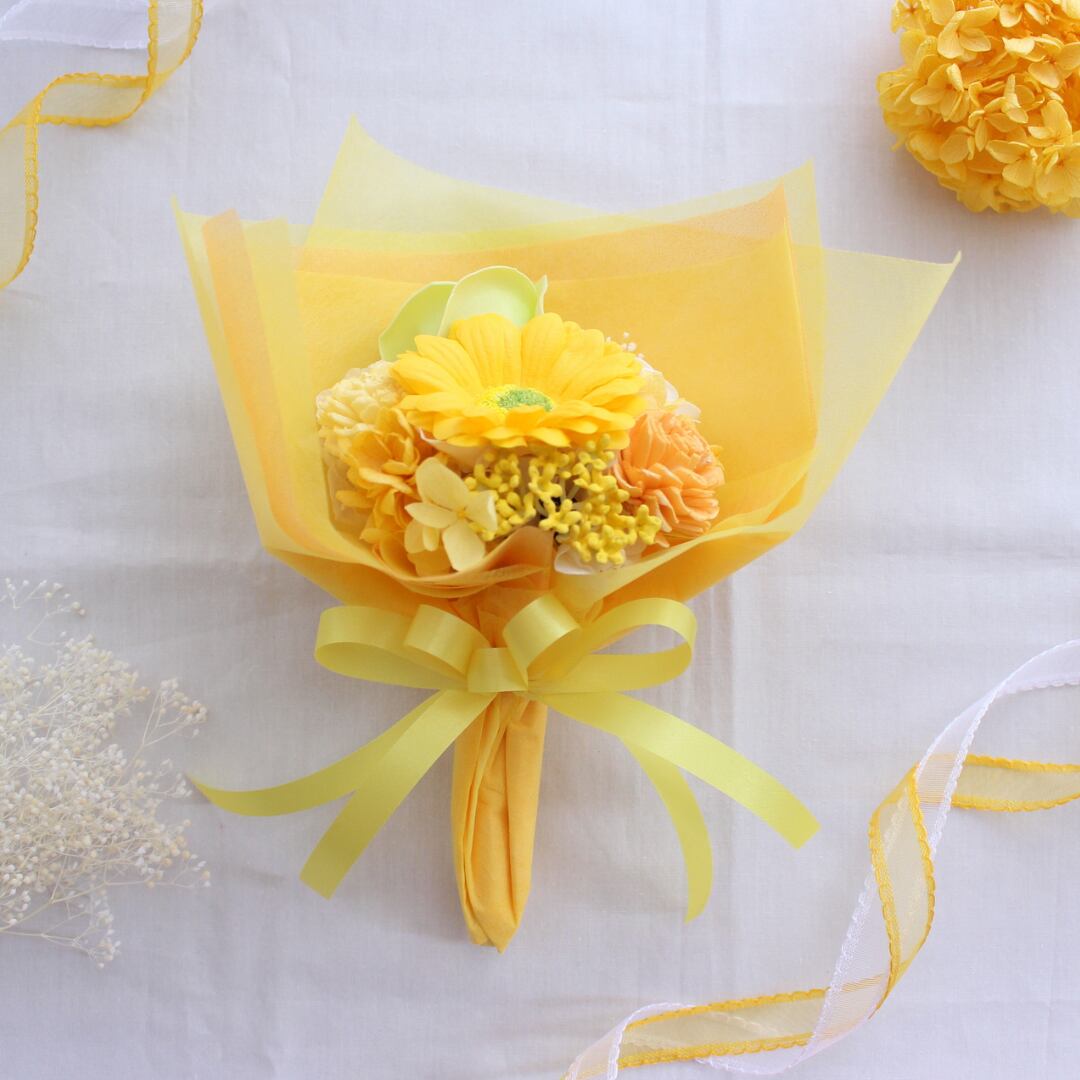 ソープフラワーで作るイエローの花束は、