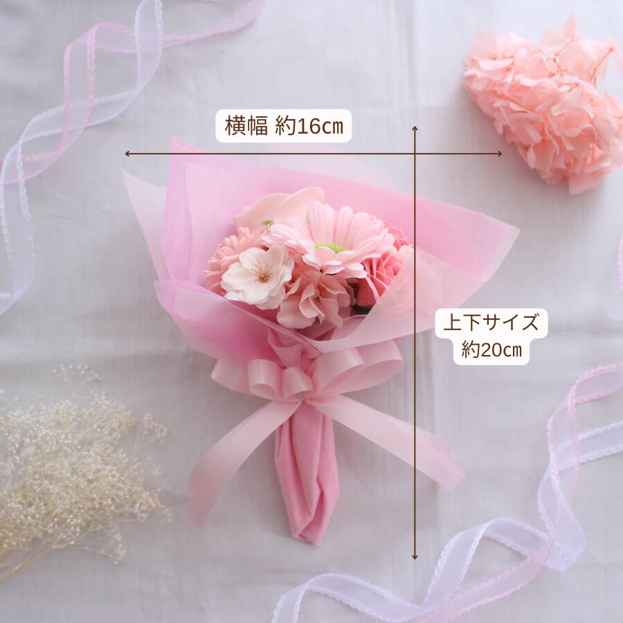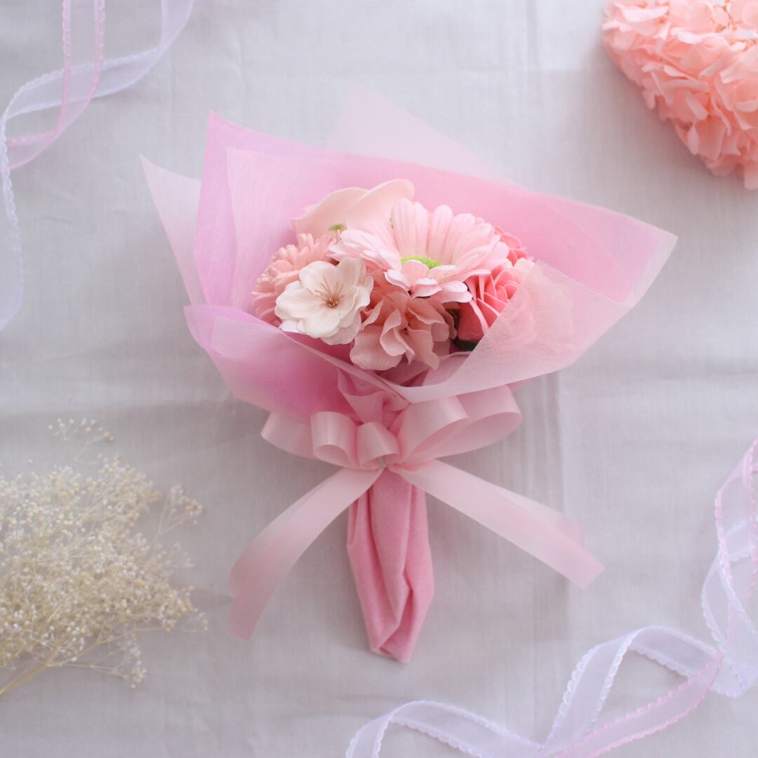 ソープフラワーで作るピンクの花束は、